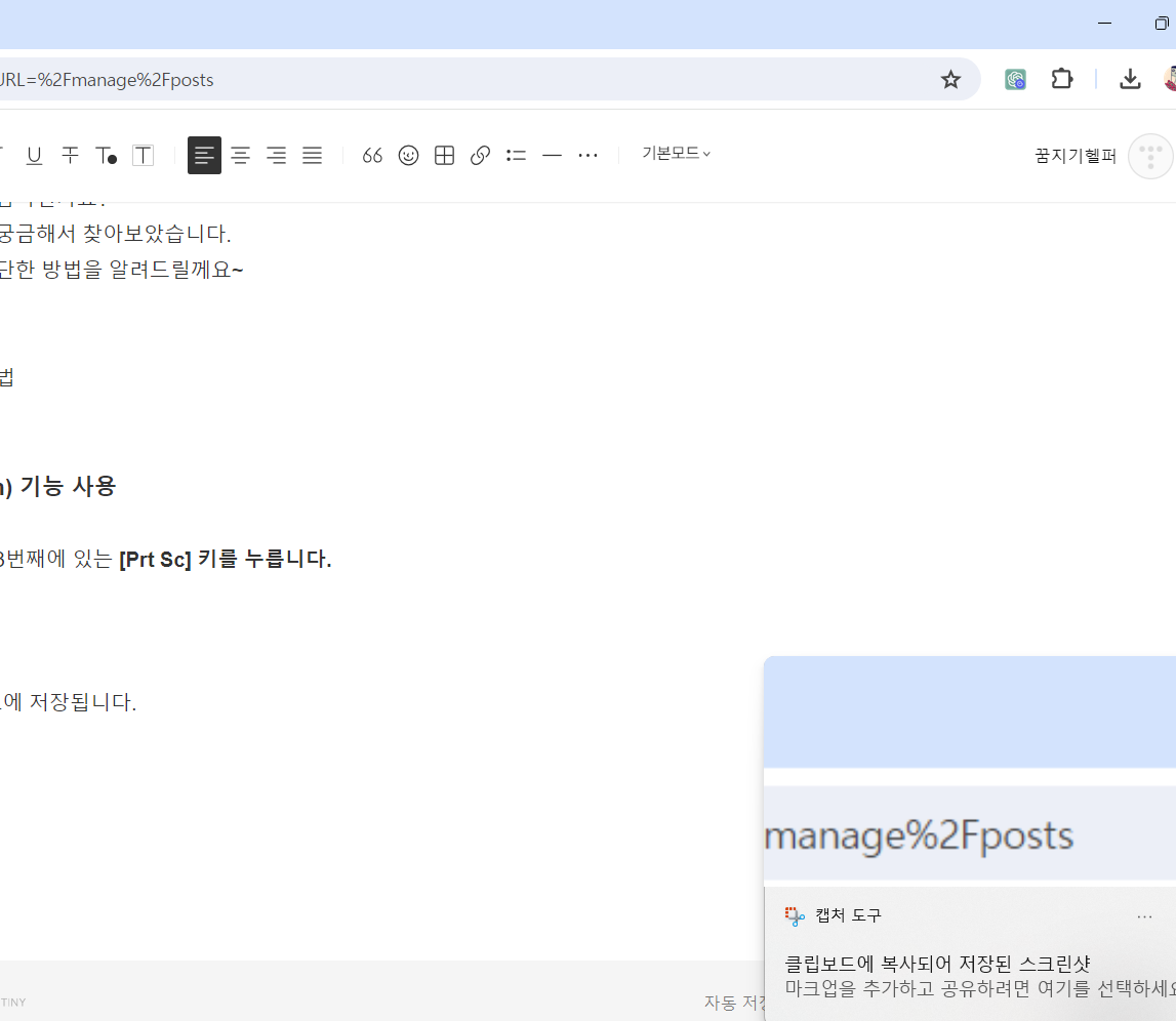 - 전체화면 이미지가 클립보드에 저장됩니다.